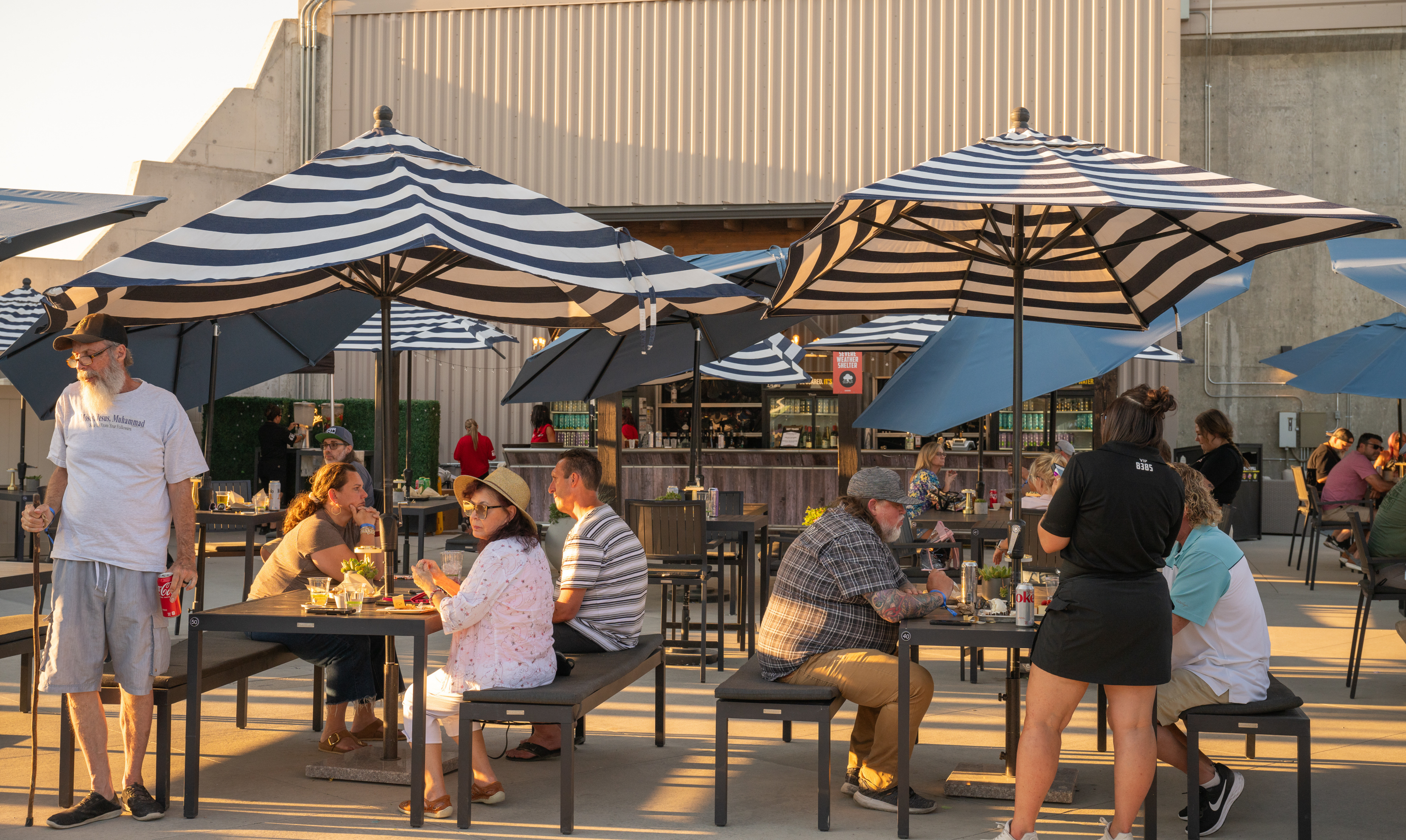 Beat the heat in our shaded, private lounge with access to a full service bar for a truly unique experience.